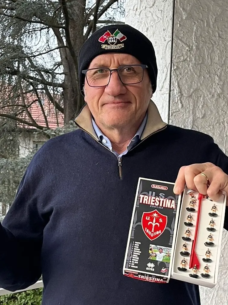 L’ex allenatore alabardato colleziona le squadre in miniatura: tra questa anche la versione dell’Unione 2002, quella con la maglia blu della storica partita contro la Lucchese che ci ha regalato la serie B