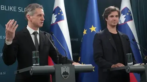 Il primo ministro sloveno Robert Golob assieme al ministro de lLavoro Luka Mesec