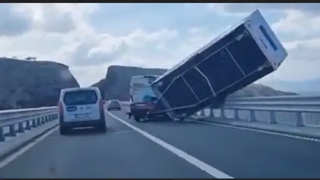 Il camper è così rimasto appoggiato sul guardrail, sospeso nel vuoto. Da quanto si apprende, il furgone ha targa straniera. I soccorritori si sono subito messi in azione, mentre dalle 15 il ponte vegliota è stato completamente chiuso al traffico. Le operazioni di rimozione della roulotte si presentano estremamente difficili a causa della bora impetuosa. Non è dato sapere se nell’incidente qualcuno sia rimasto ferito o peggio.