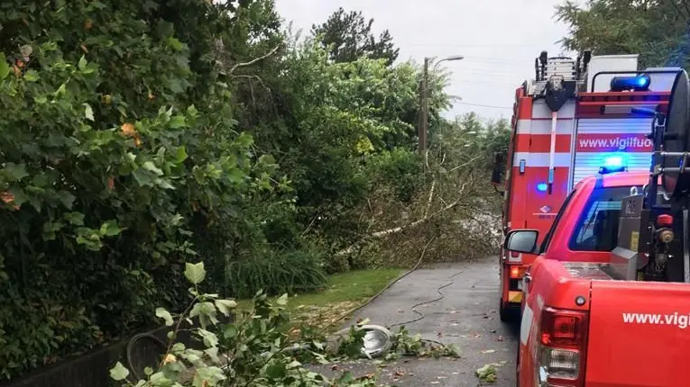 Violento temporale ieri sera accompagnato da forti raffiche di vento. I vigili del fuoco sono dovuti intervenire in via Roma a Turriaco dove un albero è stato abbattuto dal vento. La pianta nella sua caduta ha a sua volta danneggiato un traliccio dell’elettricità. Chicchi di grandine sono comparsi nell’acquazzone