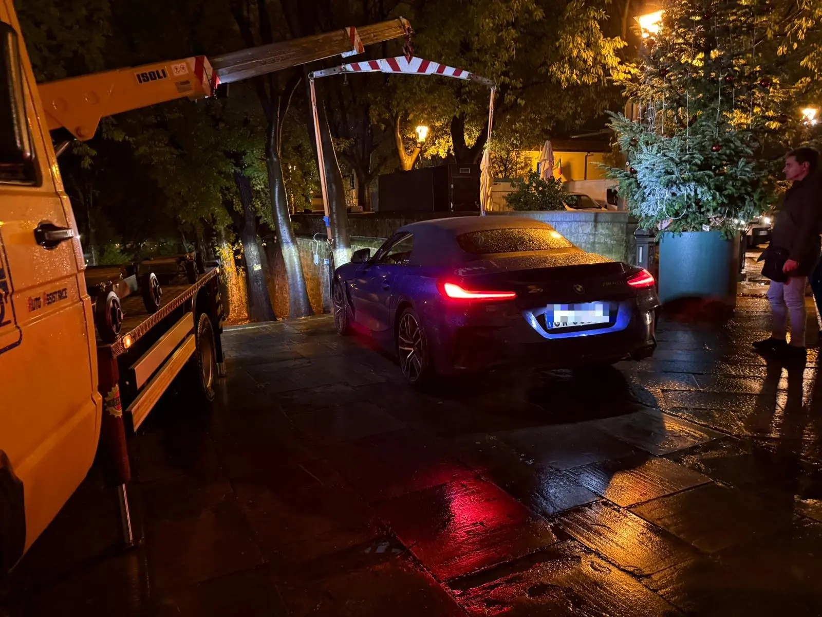Una Bmw Z4 blu elettrico nuova di zecca o quasi giù per la scalinata di San Giusto. Pare impossibile e invece è accaduto per davvero verso le 18.30 di lunedì in via della Cattedrale a Trieste. L’automobilista è arrivato fino all’ingresso della chiesa e, con ogni probabilità, trovando chiusa via San Giusto (sono in corso i lavori AcegasApsAmga, la strada è sbarrata subito dopo il capolinea della 24) ha pensato di scendere giù per via della Cattedrale in modo da raggiungere il centro arrivando, nelle sue intenzioni o in quelle del navigatore satellitare, fino all’arco di Riccardo. Solo che non ha fatto i conti con la scalinata.