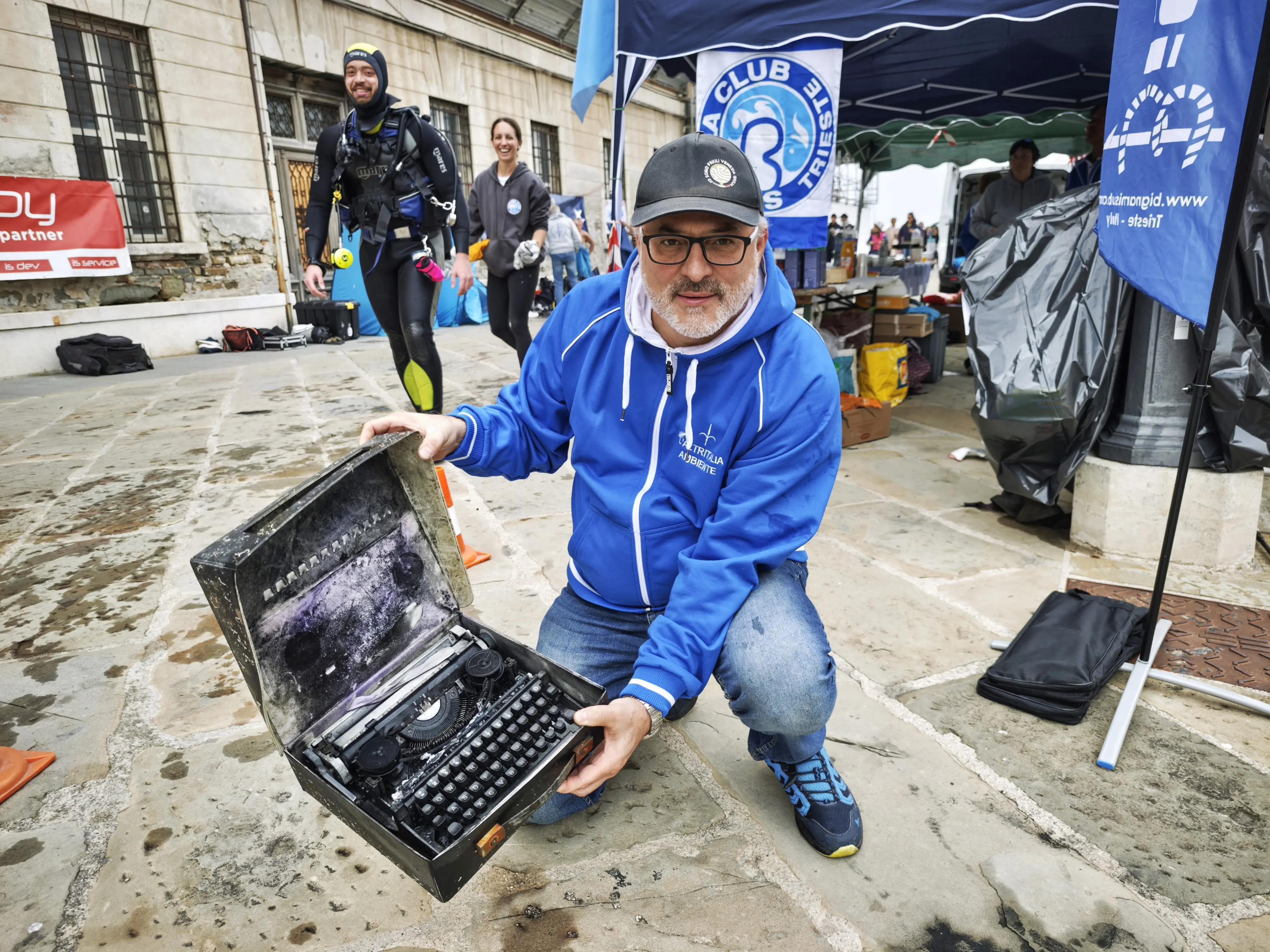 E poi la macchina da scrivere, pesantemente rovinata, conservata in una custodia nera. Impossibile capire se sia caduta e sia stata persa da chi era sulla riva o da chi magari si trovava a bordo di una delle imbarcazioni ormeggiate.