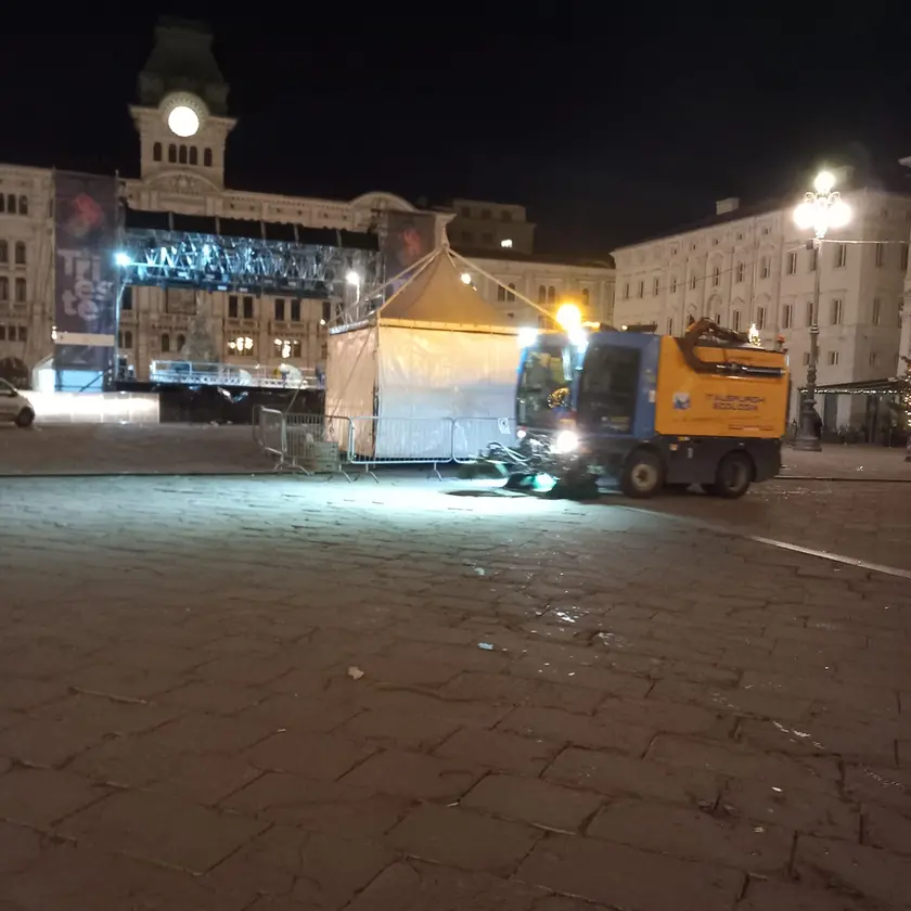 Tornando alla festa in piazza Unità, alle 4 l’intera piazza era già stata completamente ripulita e alle 8.30 anche l'intera area circostante, dalle Rive a piazza Verdi fino a piazza della Borsa.