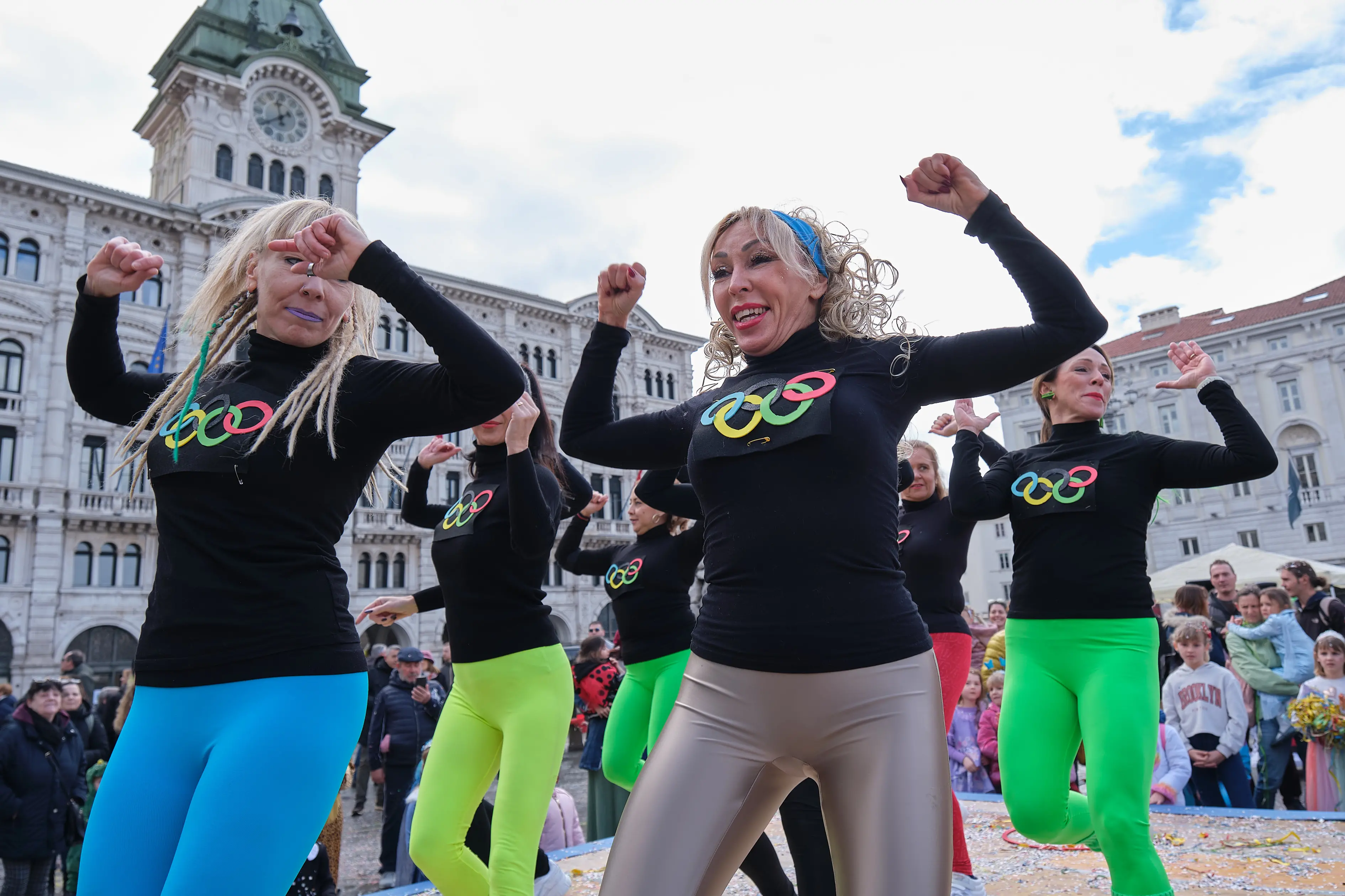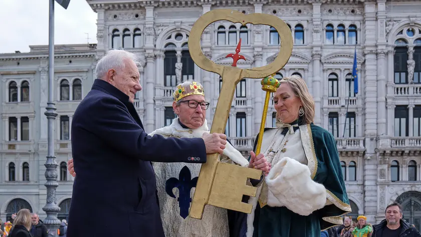 L’evento è stato aperto da una performance di Sandra Gio e il suo team di Zumbadance sulle note di Fino all’alba, l’Inno ufficiale di MilanoCortina 2026, cantato da Arisa. Poi l’attesa cerimonia di consegna delle chiavi della città da parte dell’assessore Giorgio Rossi al Re e alla Regina del Carnevale di Trieste, al secolo Alessandro Tramarin e Gabriella Zorzenoni del rione di Barriera Vecchia, arrivati in piazza a bordo di una Vespa. Con le chiavi in mano, Re Carnevale ha proclamato l’inizio dei festeggiamenti «Popolo, buongiorno a tutti. Oggi, in questa giornata bellissima, con tutto questo pubblico, apro il Carnevale 2026».