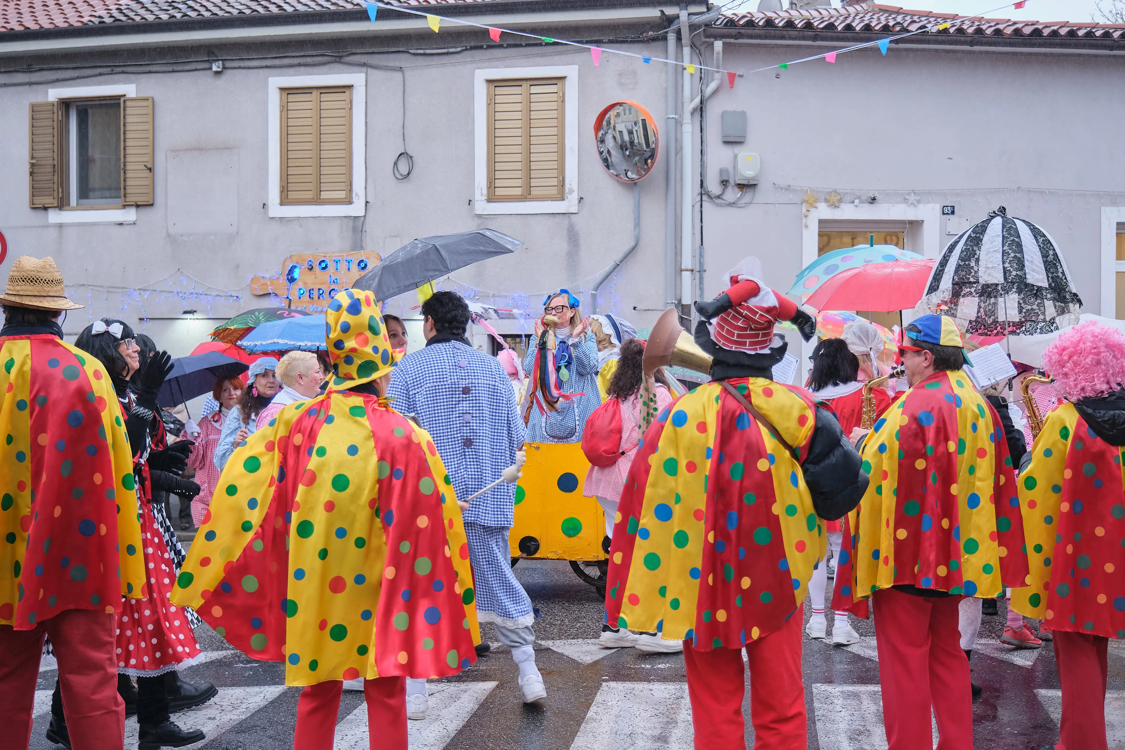 Il maltempo non ha fermato la tradizione: il Carnevale di Trieste è entrato ufficialmente nel vivo oggi pomeriggio, Giovedì Grasso, con il consueto “Corso delle Serve” nel rione di Servola. Tra pioggia a tratti insistente e qualche breve tregua, le viuzze del rione si sono animate comunque di maschere, musica e colori, confermando il Corso delle Serve uno degli appuntamenti più caratteristici e attesi.