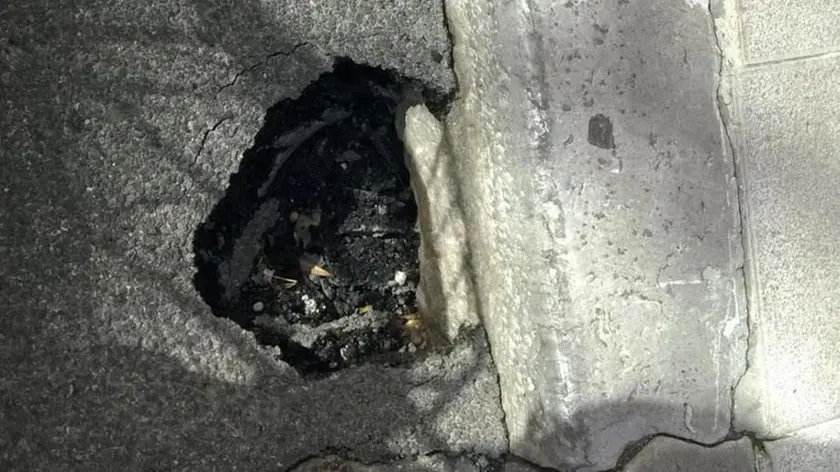 Cede il fondo di via Morelli. Ecco l'effetto che gli acquazzoni e le grandinate dei giorni scorsi hanno avuto sull'asfalto e il porfido della stretta via del centro storico goriziano, recentemente interessato da lavori di scavo per la sostituzione delle tubature. Nei giorni scorsi lungo la via si è aperto un buco all'altezza del civico 39.