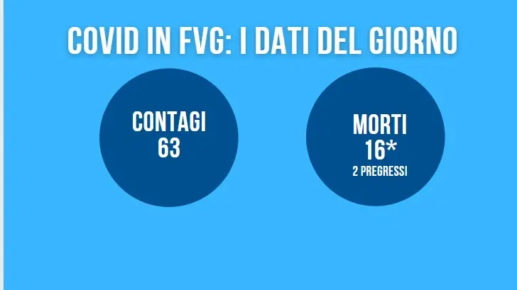 Coronavirus, in Fvg 63 nuovi contagi e 16 vittime, ma su un numero minore di tamponi