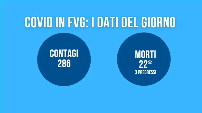 TRIESTE. Oggi in Friuli Venezia Giulia su 4.306 tamponi molecolari sono stati rilevati 166 nuovi contagi con una percentuale di positività del 3,85%. Sono inoltre 2.960 i test rapidi antigenici realizzati, dai quali sono stati rilevati 120 casi (4,05%). I decessi registrati sono 19, a cui se ne aggiunge tre pregressi, i ricoveri nelle terapie intensive scendono a 79 così come quelli in altri reparti che risultano essere 584.
