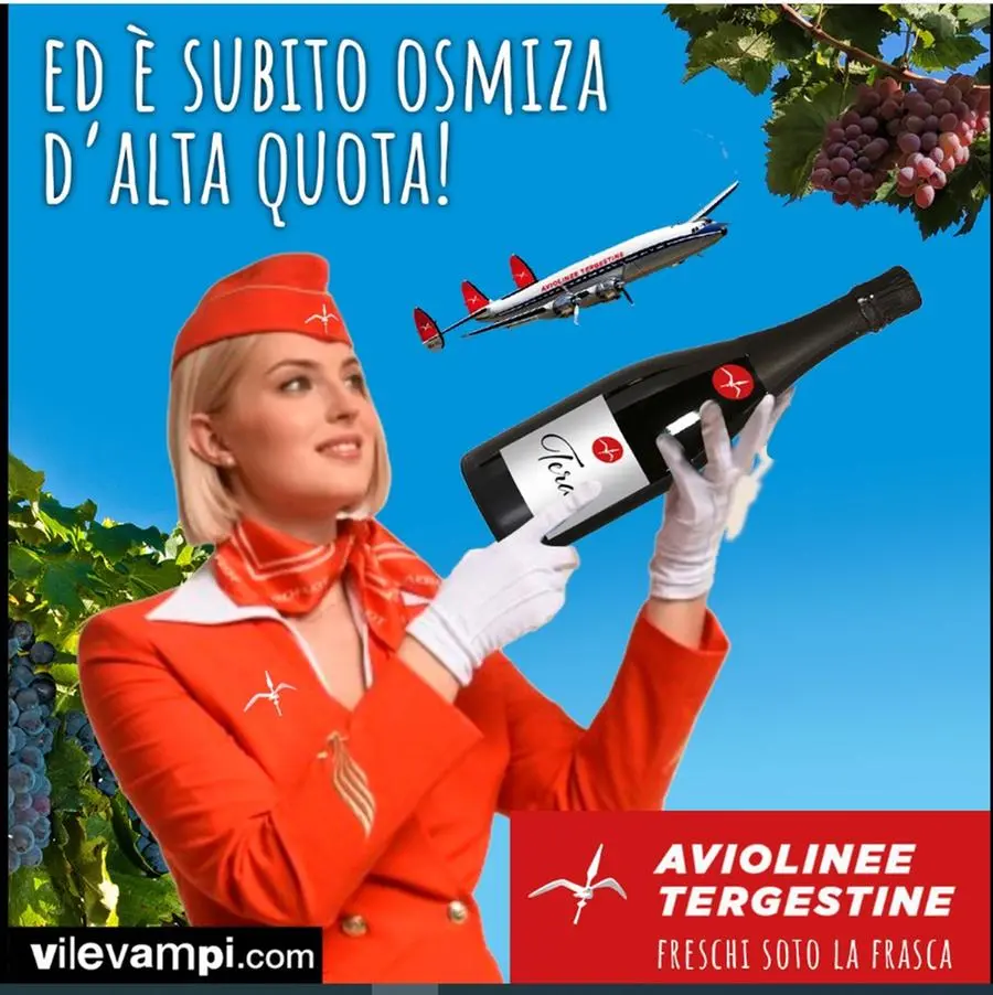 "Volare? Volentieri!” E’ il motto di Aviolinee Tergestine, la compagnia, rigorosamente farlocca, creata dal gruppo satirico Vile&Vampi, in cui si riconoscono i tre vignettisti Paolo Pascutto, Fabrizio Polojaz e Paolo Tanze.