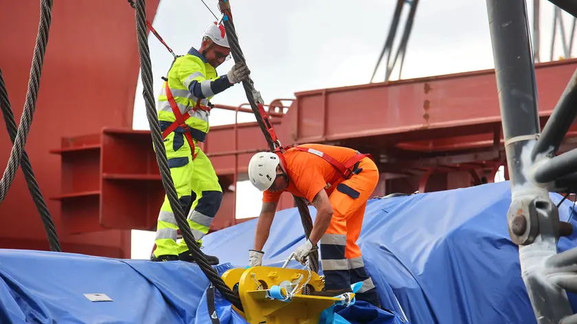 Il trasferimento di un propulsore prodotto a Bagnoli (Lasorte, foto di archivio)