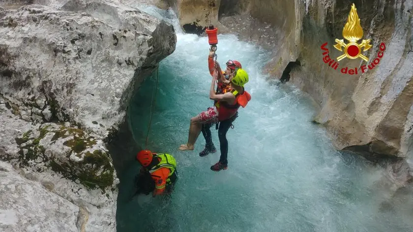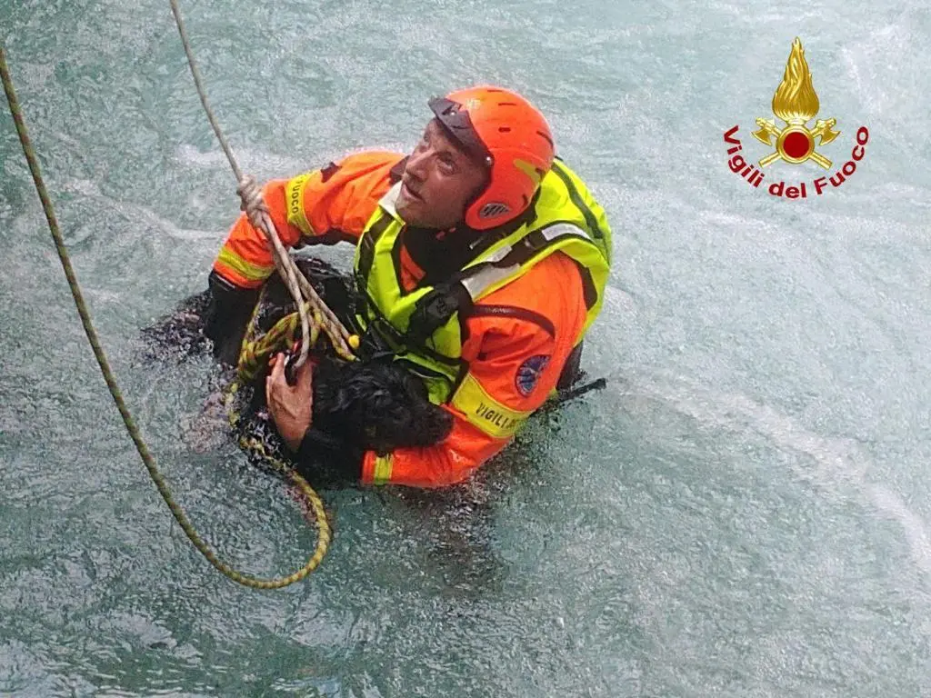 VITO D'ASIO. I Vigili del fuoco di Spilimbergo, supportati dal personale Speleo Alpino Fluviale di Maniago e Pordenone sono intervenuti alle 14.30 di oggi, lunedì 13 luglio, per una richiesta di soccorso in località Curnila, sul torrente Arzino. Un ragazzo triestino di 28 anni, nel tentativo di trarre in salvo il suo cane, un meticcio di taglia media trasportato a valle dalla corrente, rimasto intrappolato nella forra che in quel punto si chiude aumentando considerevolmente la forza della corrente.