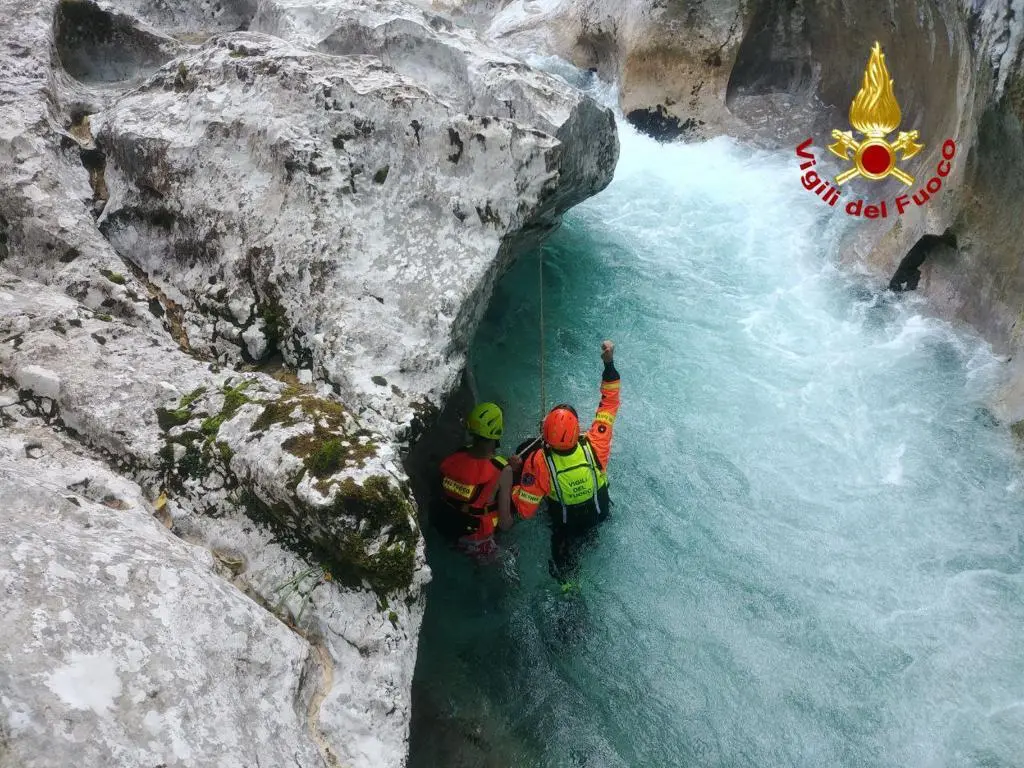 Escursionista e il suo cane intrappolati in una forra nell'acqua gelida: salvati con l'elicottero