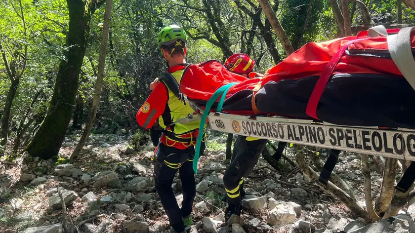 Sei soccorritori della stazione di Trieste tra cui due infermieri hanno imbarellato il ferito dopo averlo adagiato nel materasso a depressione e hanno fatto una calata con la barella portantina assicurata dalle corde per circa cento metri. I Vigili del Fuoco hanno aiutato a liberare la via nel bosco con la motosega