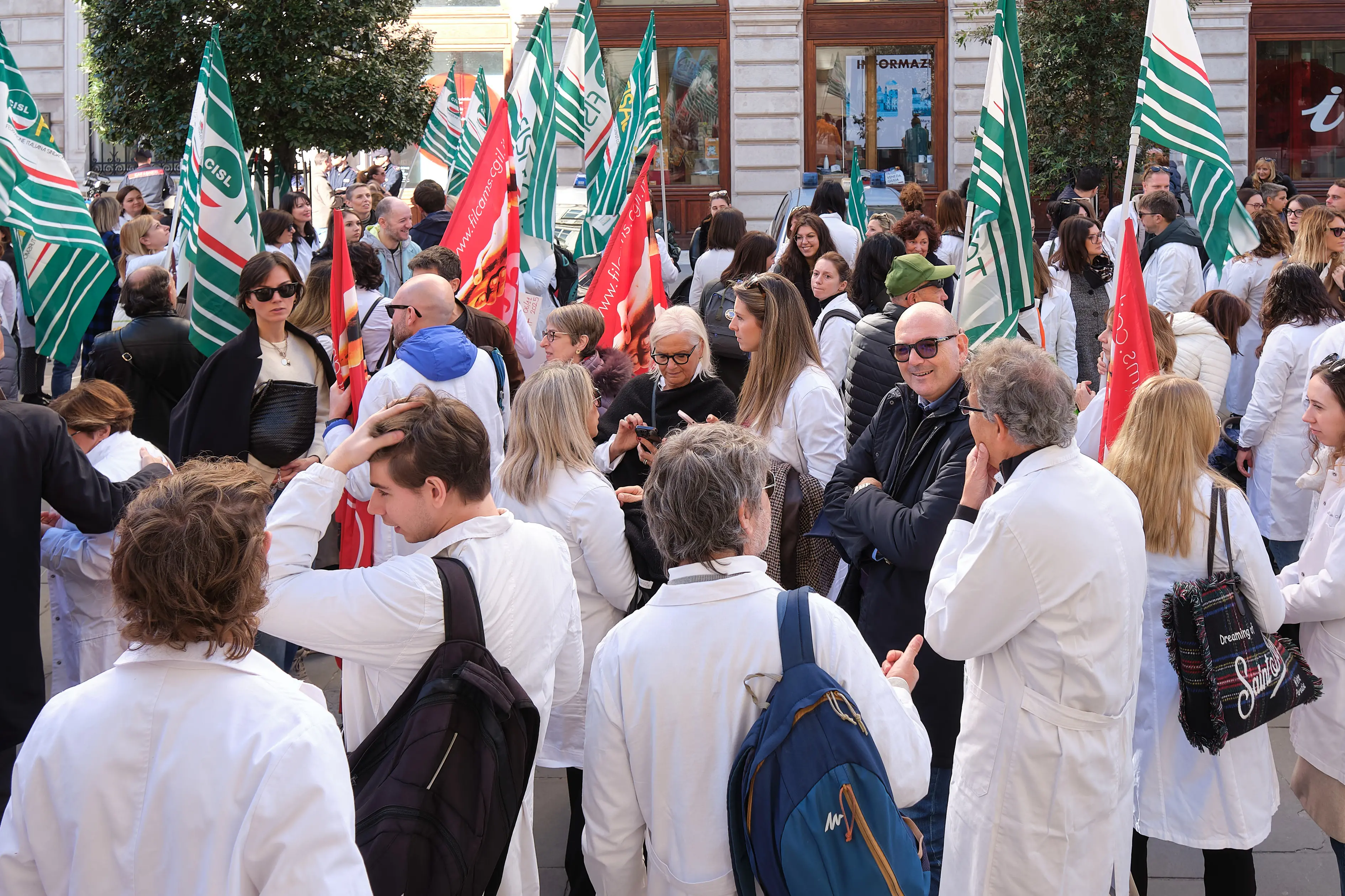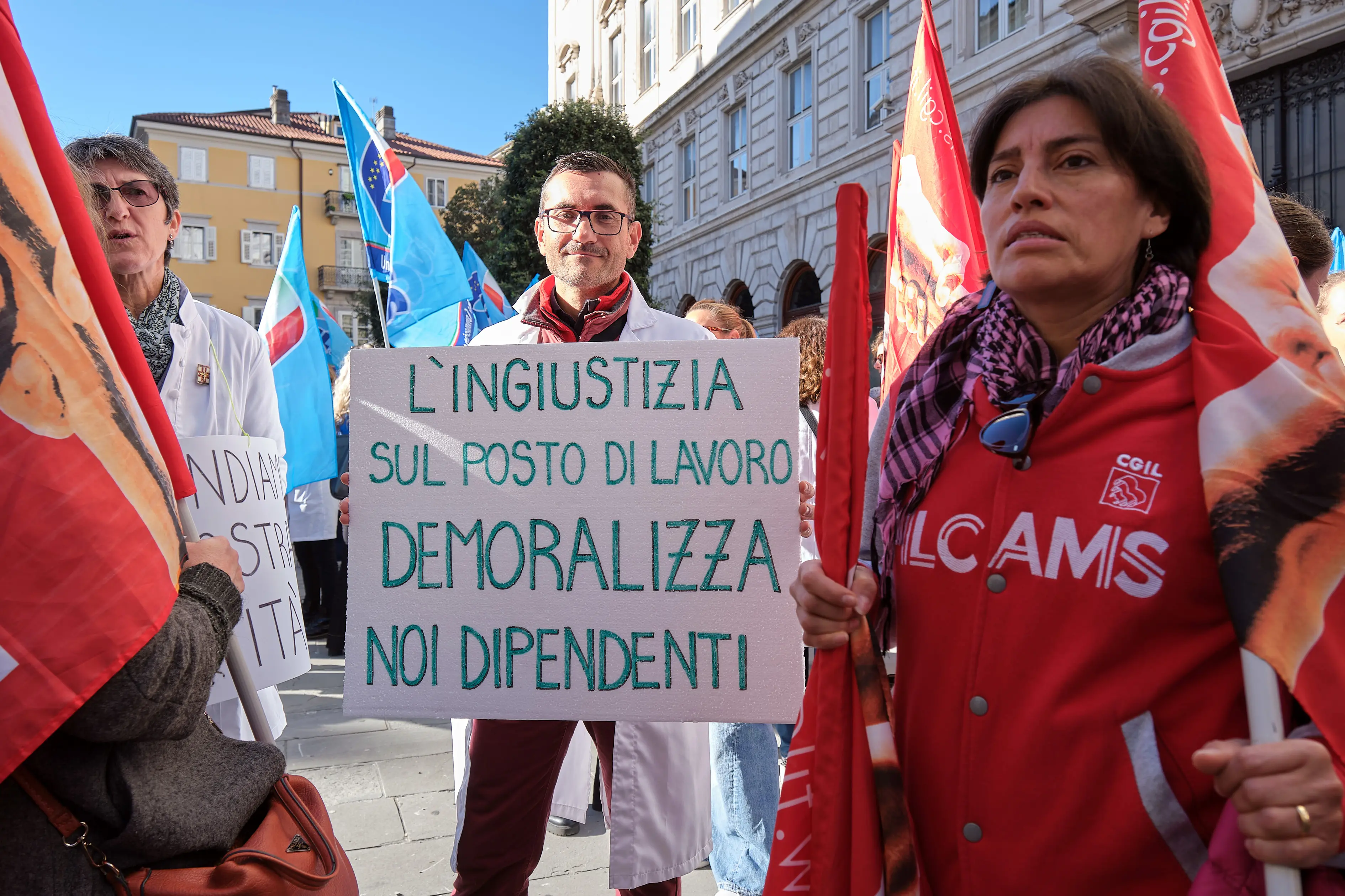 Si sono riuniti in presidio davanti alla sede della Regione Friuli Venezia Giulia, indossando i loro camici bianchi, per chiedere maggiori tutele e diritti. Hanno protestato per un contratto scaduto da tempo: "vogliamo dignità professionale", la loro richiesta sui loro cartelli.