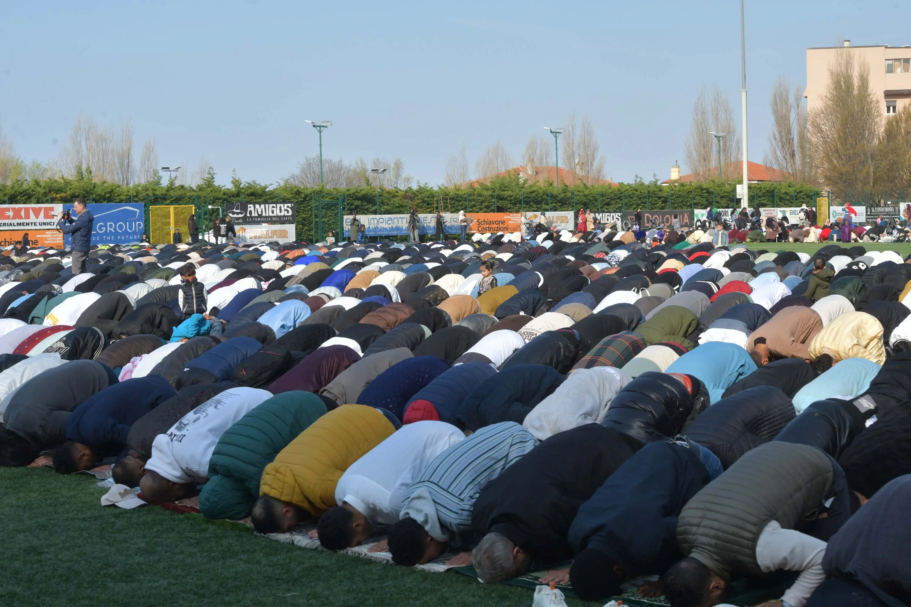 Sul prato del campo da calcio per la preghiera erano presenti circa 2 mila persone, chi con indosso gli abiti tradizionali e chi con quelli di tutti i giorni. L’assenza di rappresentanti istituzionali non è passata inosservata, ma non ha rappresentato un problema, come ha spiegato a margine il presidente della comunità.