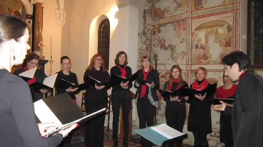 FRATTA. È stato un simbolico quanto significativo abbraccio transfrontaliero, dedicato al canto, alla storia, alle tradizioni e alla cultura slovena, che ha visto protagoniste, in forza a due sodalizi diversi, un bel numero di giovani coriste, che risiedono al di qua e al di là del confine tra l'Italia e la Slovenia. Una sorta di gemellaggio canoro, reso possibile in occasione del tradizionale concerto natalizio, che si è tenuto nella Trecentesca chiesetta di Santo Stefano a Fratta ed è stato proposto, come ogni anno, dal Circolo “Mario Fain” e dal gruppo di ricerca “I Scussons” di Romans. Stavolta, infatti, gli organizzatori hanno chiamato a esibirsi, nella suggestiva chiesetta della frazione romanese, due cori d'estrazione e di terra slovena: il gruppo vocale femminile “Jezero” di Doberdò, composto da una ventina di ragazze e diretto dal maestro Dario Bertinazzi, e il coro femminile da camera “Plejade”, di Aidussina (Slovenia), che contava una quindicina di coriste, diretto dal maestro Patrick Quaggiato. I due cori sono stati accolti da un folto pubblico e dal saluto di Renato Valentinunz e Germano Pupin, per il Circolo “Fain” e “I Scussons”, dal vicesindaco Michele Calligaris e dal consigliere provinciale Alessandro Zanella. Le due formazioni hanno proposto un ampio repertorio di brani natalizi, che hanno spaziato dai più antichi canti liturgici sloveni fino ai brani più popolari che arricchiscono il Natale in tutto il mondo, per concludere poi insieme con il famosissimo “Jingle bells”, che i due coro hanno intonato con maestria, strappando gli applausi del pubblico.