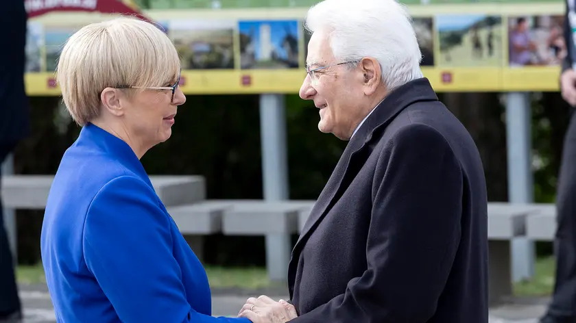 La presidente slovena Nataša Pirc Musar e il capo dello Stato Sergio Mattarella. A destra insegne bilingue in italiano e sloveno