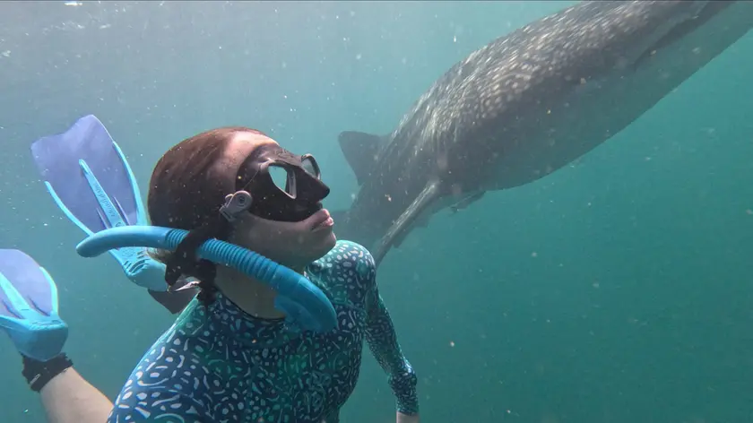 Gaia Peracca in immersione con lo squalo balena