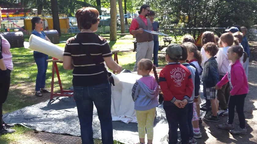 Il tema a cui si sono ispirati i bambini nei loro lavori e gli artisti con le opere collocate in Pineta è stato quello degli animali fantastici. «Abbiamo operato in diverse fasi successive e l'opera conclusiva, un labirinto “botanico” progettato dagli studenti del Brignoli, la presenteremo sabato alle 16.15». Si tratta di un piccolo labirinto con collocata al centro una scultura in legno di cedro (un cedro caduto proveniente dai giardini pubblici) che rappresenta i musicanti di Brema, opera dello scultore Paolo Figar. Ieri e oggi i bambini della scuola dell'infanzia sono impegnati in una interessante attività collettiva per colorare la grande scultura. Il progetto come detto è pluriennale. Durante il primo anno i bambini hanno ideato alcune tappe del percorso-gioco lavorando con moduli in cartone per sperimentare le varie possibilità. Poi hanno realizzato delle panchine coloratissime ispirate a Mondrian. Quindi la collocazione di strutture ludiche in sequenza che possono essere fruite separatamente o utilizzate per gareggiare con amici e misurarsi in varie abilità. Il parco giochi è stato infine completato con un’ultima fase, con tanto di labirinto, panchine per i genitori, tavolo per le merende. Ed è già frequentatissimo.