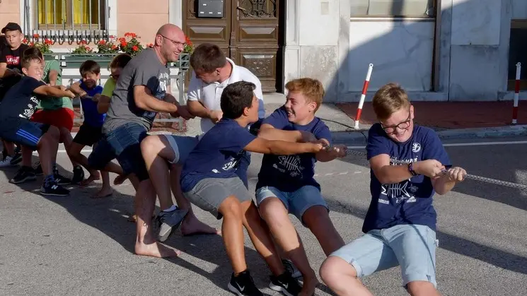 I “gurnci” battono i “dulnci” nel palio di Santa Croce a suon di sfide a tiro alla fune