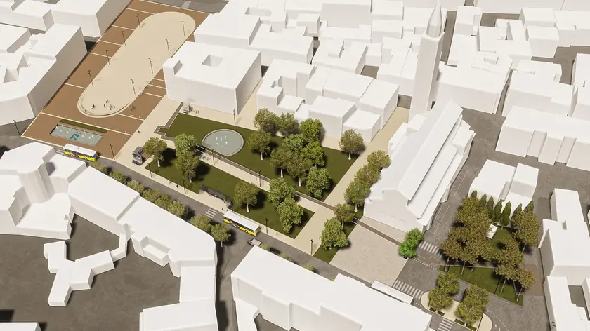 Riaffiora il percorso delle antiche mura (si scaverà e si troverà quel che si troverà: è un’incognita pure per i progettisti), valorizzate nel gioco di luci o nel camminamento in porfido. Con un colpo di spugna via altalene e scivoli del parco giochi Unicef, di fianco al duomo. Che recupera integralmente il sagrato per l’eliminazione della corsia preferenziale dei bus e con benedizione di Apt: al suo posto essenze arboree, prato d’erba calpestabile, fiori. Un piccolo polmone tutto verde (dagli odierni 1.300 si passa a 3.000 metri quadrati). I taxi si concentrano davanti al monumento dei caduti. La stazione del trasporto pubblico trasloca invece su via Rosselli principale (ora è su quella interna), che diventa anche asse di scorrimento dei pullman. Qui il progettista Francesco Morena, in tandem con l’ingegner Edino Valcovich, vuole essere esplicito: «Non si possono mantenere gli elementi degli anni ’50 quando la mobilità del futuro vede invece, grazie a nuove tecnologie, mezzi sempre più piccoli e punti di hub anziché stazioni vere e proprie: un’incongruenza lasciare riservata l’intera corsia interna».