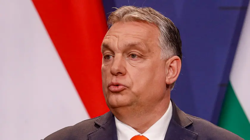 Hungarian prime minister Viktor Orban, speaks during a joint press conference with Poland's prime minister, Matteusz Morawiecki and former interior minister of Italy, Matteo Salvini in Budapest, Hungary, Thursday, April 1, 2021. Hungarian prime minister Viktor Orban hosted talks with right-wing politicians, Poland's prime minister, Matteusz Morawiecki, and former interior minister of Italy, Matteo Salvini, a potential opening step toward a new populist political force on the European stage. (AP Photo/Laszlo Balogh)