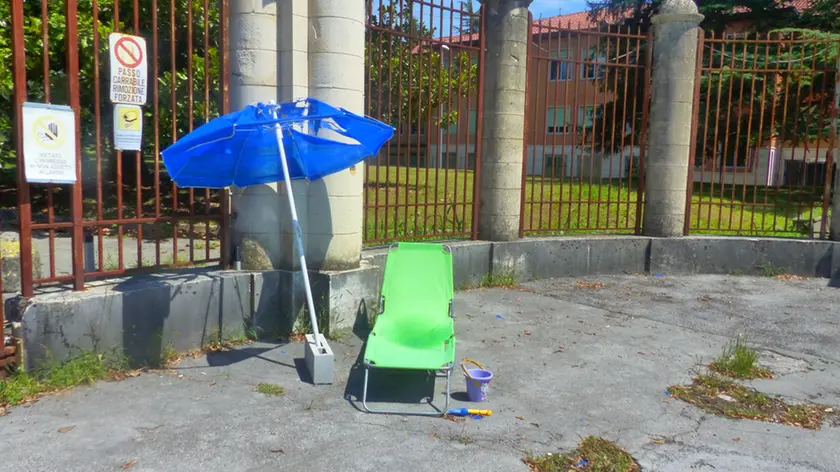 Bumbaca Gorizia 26_07_2020 Ombrellone sdraio e secchiello davanti al ex Sanatorio © Foto Pierluigi Bumbaca