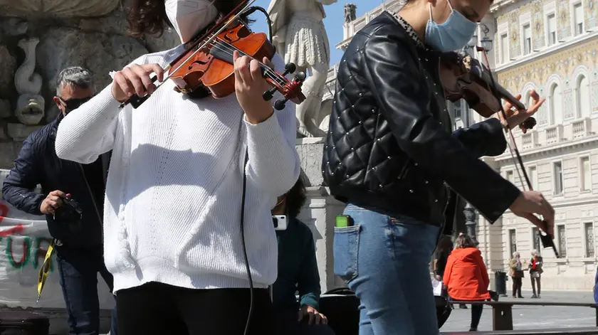 La musica lenta e malinconica suonata dai violini, i testi letti al microfono con forza, per evidenziare il desiderio di cambiamento, e cartelli e striscioni sparsi tutto attorno, per ribadire alcuni messaggi, quelli considerati più importanti. Ieri i ragazzi di Fridays For Future, insieme a Extinction Rebellion Fvg, hanno manifestato, in modo pacifico, in piazza Unità d’Italia, in occasione della Giornata mondiale della Terra. Con lo slogan “scriviamo il futuro” hanno chiesto, come ormai ogni anno, nel corso di manifestazioni che si ripetono nelle piazze di tutto il mondo, un’attenzione maggiore verso i cambiamenti climatici. «Abbiamo diritto al nostro futuro e a quello delle prossime generazioni, che rischia di essere compromesso dal riscaldamento globale – ha letto in apertura la giovane Eleonora, di Fridays For Future Trieste –: sono tanti gli studi che dimostrano come l’innalzamento delle temperature medie stia avvenendo a ritmi accelerati, mai registrati prima. La terra è di tutti, per tutti, l’attivismo climatico, economico e sanitario è di tutti e per tutti. Costruire una transizione equa, che rilanci l’economia attraverso l’educazione e l’eco-compatibilità, vogliamo che sia di tutti e per tutti». Citati poi gli esempi di alcuni disastri ambientali registrati in Australia, Groenlandia e anche in Italia.