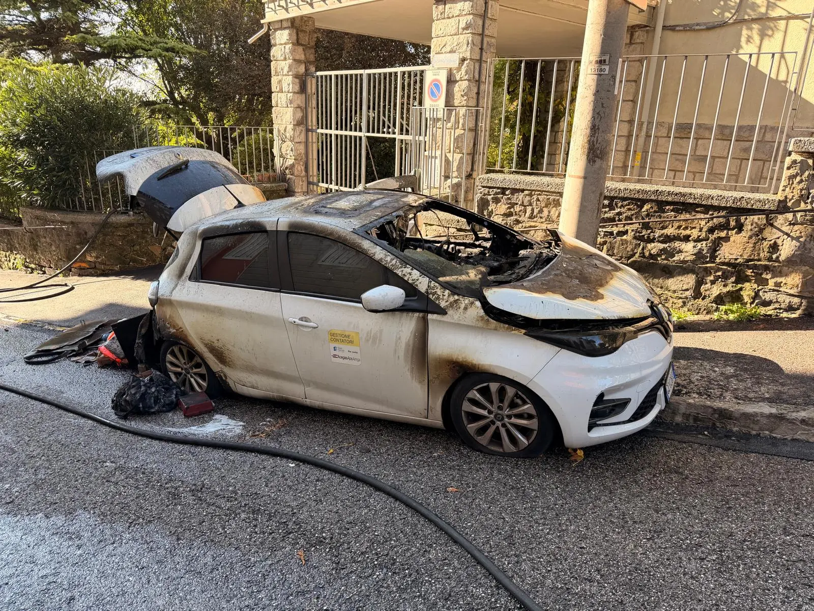 Non è ancora chiaro il motivo dell’innesco, ma visto il punto in cui ha preso fuoco la vettura – la parte anteriore – potrebbe trattarsi di un guasto alla batteria. Per ragioni di sicurezza sono state evacuate elementari e asilo della Montessori.
