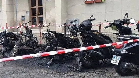 Incendio fa strage di scooter in sosta