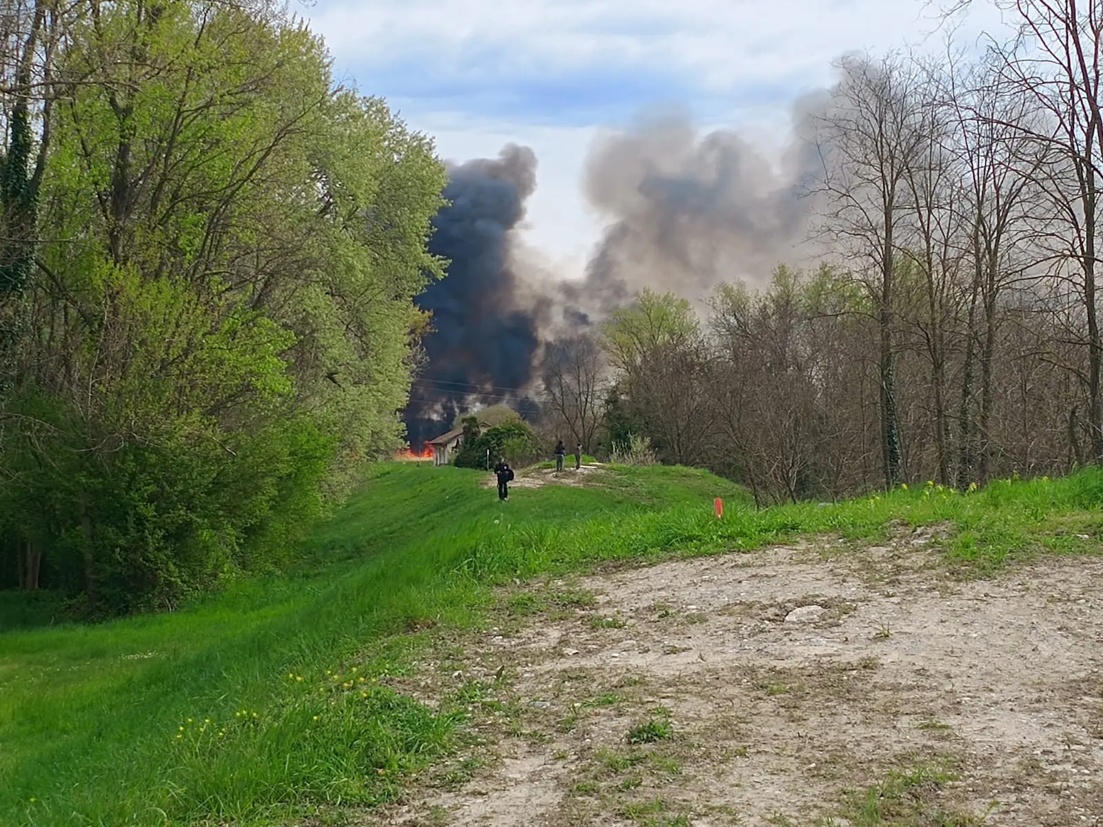 La spessa colonna di fumo è visibile anche a una certa distanza, fin da Trieste, alimentato appunto dalle raffiche.