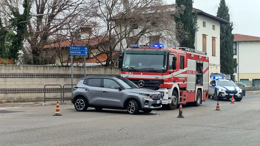 Auto si scontra contro un camion dei vigili del fuoco a Ronchi: una ferita lieve