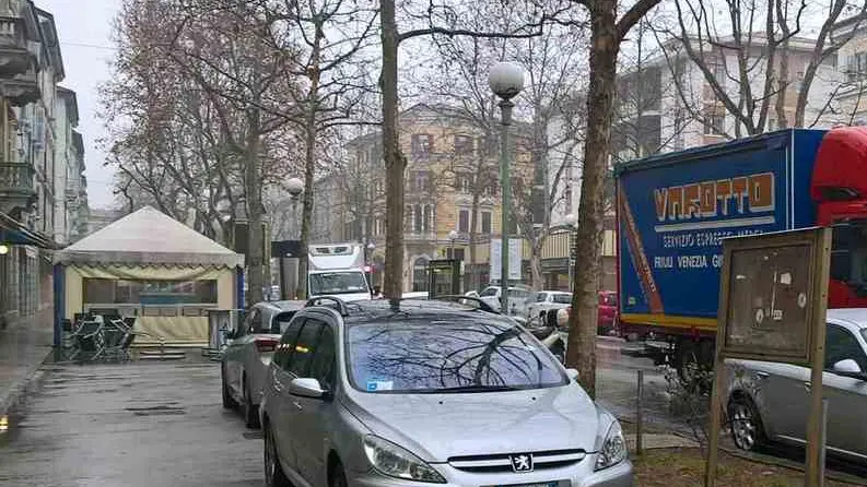 La foto è stata immortalata ieri alle 9.30. In corrispondenza del civico 90 di corso Italia, quindi in pieno centro. Ad indirizzarla alla redazione un nostro lettore (Morris Morselli) che denuncia i disagi che, giornalmente, deve subire il condominio in cui risiede. «L’immagine - scrive - descrive questo dobbiamo affrontare ogni giorno quando si esce dal condominio Tiziano: macchine sul vialetto pedonale che impediscono l'uscita dal palazzo, camion in mezzo alla strada (fermo da 5 minuti) sullo spazio autobus ,camion, e macchine (tre) ferme da 20 minuti e nessun vigile in giro. Speriamo che qualche volta gli agenti della municipale si ricordino di passare per il Corso Italia».