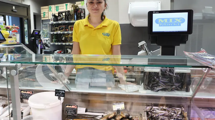 Il MixMarket di via Foschiatti e le sue molte curiosità: la commessa Olga Cretu al banco del pesce salato Foto Lasorte