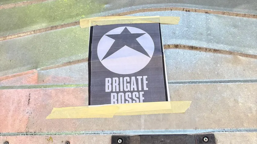 Una parte fa riferimento alla vertenza in corso alla StarTech. Un altro riporta il simbolo delle Brigate Rosse
