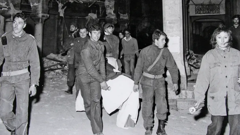Una foto storica dei concitati momenti dei soccorsi nel 1976