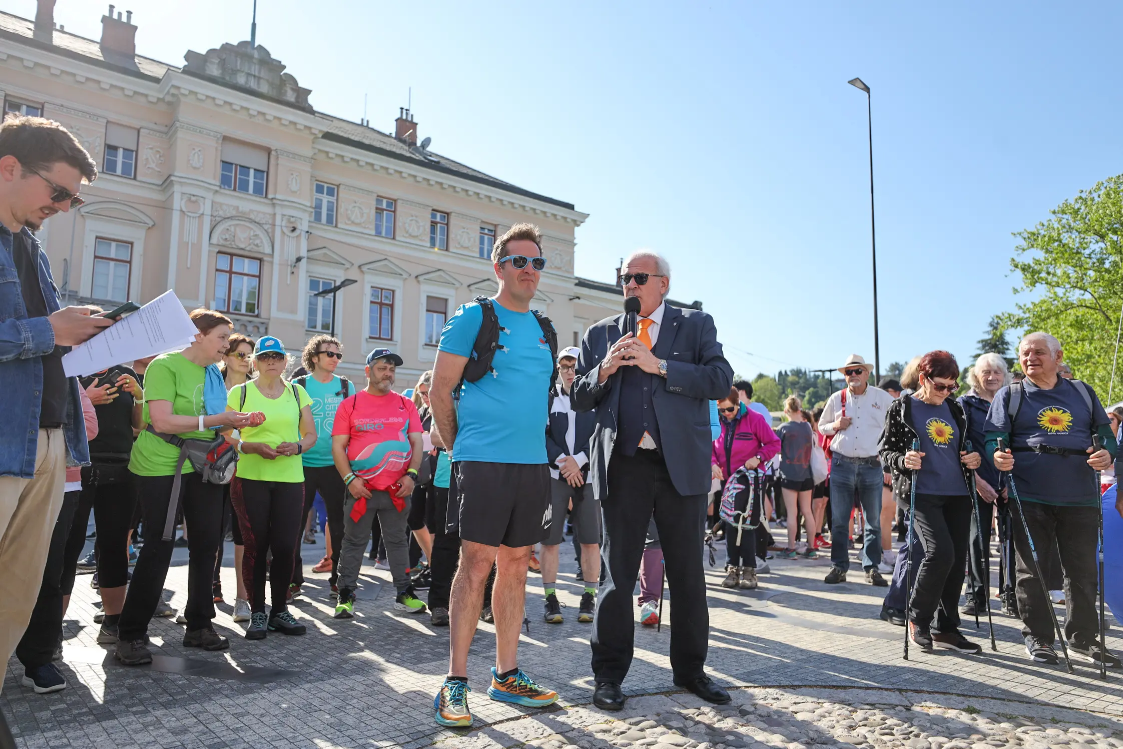 Erano in circa 1.700 al via da piazza Transalpina, dopo aver fatto la fila per l’iscrizione, aver scattato foto, ammirato l’esibizione del gruppo di majorettes dell’associazione Twirling, e aver ascoltato la musica della GoNg Orchestra. A scandire il conto alla rovescia, bilingue, per la partenza della marcia, sono stati insieme il sindaco Rodolfo Ziberna e il collega di Nova Gorica Samo Turel, nell’occasione però decisamente divisi per quanto riguarda l’abbigliamento: Turel, che poi avrebbe partecipato alla marcia, sfoggiava un perfetto completo sportivo, Ziberna era elegantissimo nel suo abito scuro, dovendo di lì a poco inaugurare “Contea”.
