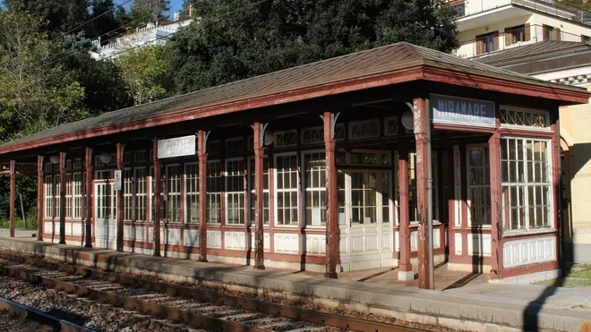 Riemergendo da quel mondo di tenebra, si disegna la fermata dove l’arciduca Massimiliano d’Asburgo scendeva dal treno per raggiungere in carrozza il castello. Miramare non ha nulla a che vedere con le piccole fermate e le stazioncine a forma di parallelepipedi dalle mascelle volitive disseminate per l’Italia. Massimiliano pretese un capolavoro di bellezza. L’edificio color caffellatte è arricchito da un delizioso porticato di legno che oggi è ridotto a una garitta abitata dai fantasmi. Sbirciando oltre i vetri, si intravede ancora una scala che scende verso via Beirut. In fondo c’era il ricovero delle carrozze, ora chiuso. Aprire al pubblico la parte non abitata della fermata significherebbe impiegare personale di guardia, ma tale operazione sarebbe contraria alla politica di risparmio delle Fs.