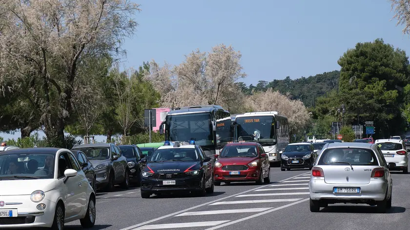 Ingorgo tra pullman e auto a Miramare (Silvano)