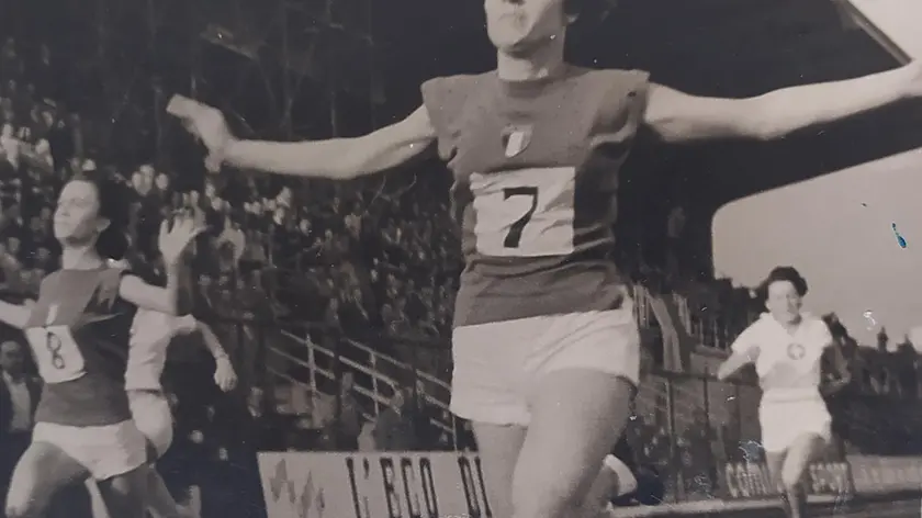 Marzia Torresi vittoriosa sui 100 metri a Bergamo nell’incontro Italia-Svizzera del 1950