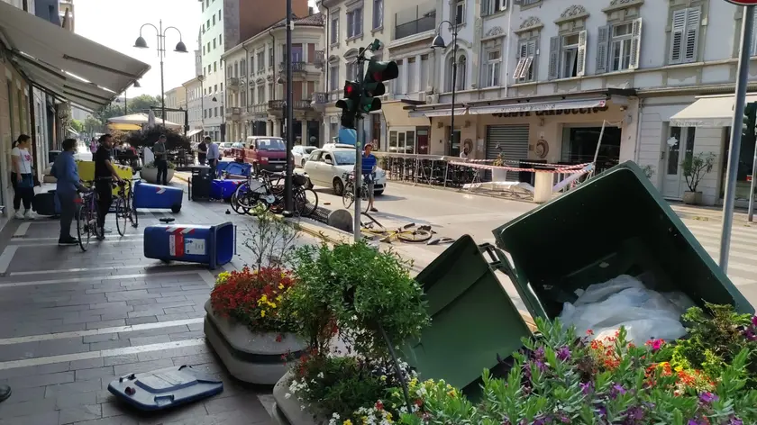 MONFALCONE. Spettacolare incidente in via Duca D’Aosta, in centro a Monfalcone, nella prima mattina di lunedì 16 maggio. Nell’arteria, all’altezza del