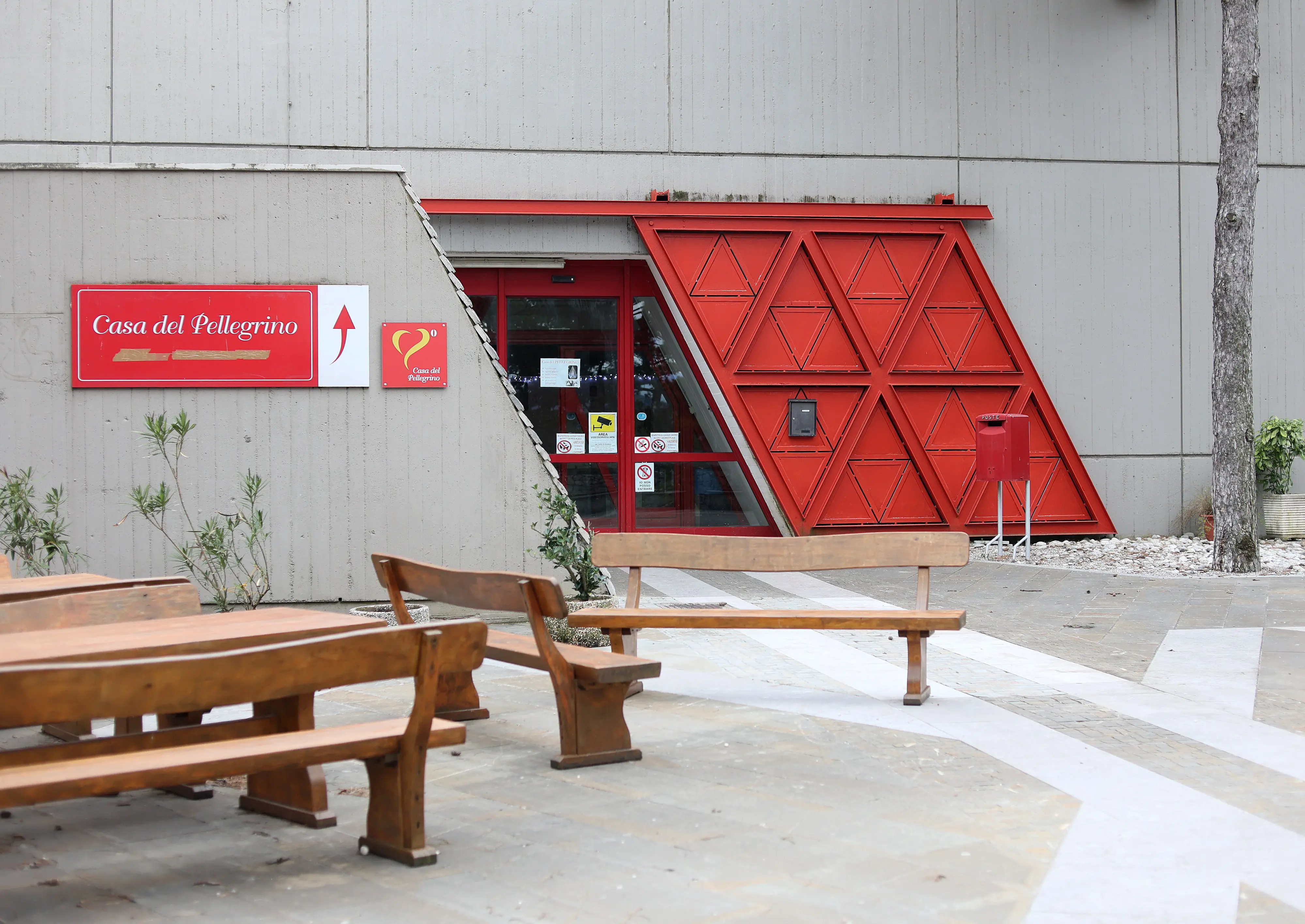 Sull’insegna rossa che indica la Casa del Pellegrino, con del nastro adesivo è stata coperta l’indicazione “bar ristorante”. Il santuario – parroco e rettore di Maria Madre e Regina è Lorenzo Pardi – ha avviato, come dicevamo, una gestione “fai da te”, senza somministrare direttamente i pasti o le bibite ma, come spiegano dalla parrocchia, dando la disponibilità alle comitive che arrivano a Contovello, di fruire di quegli spazi per consumare il pasto portato da casa, al riparo, comodamente seduti.