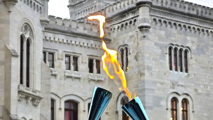 Il castello di Miramare con la fiamma olimpica (foto Andrea Lasorte)
