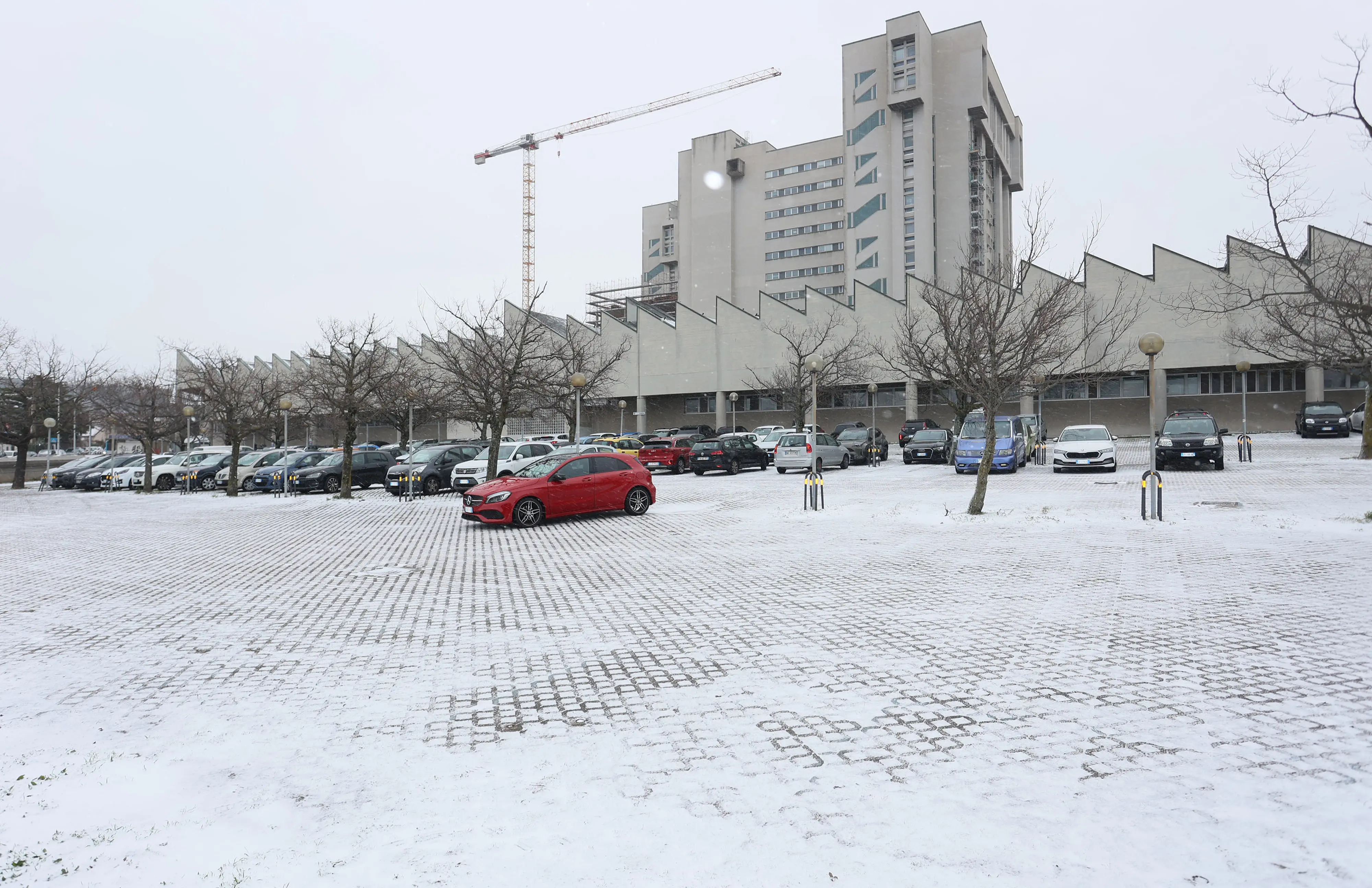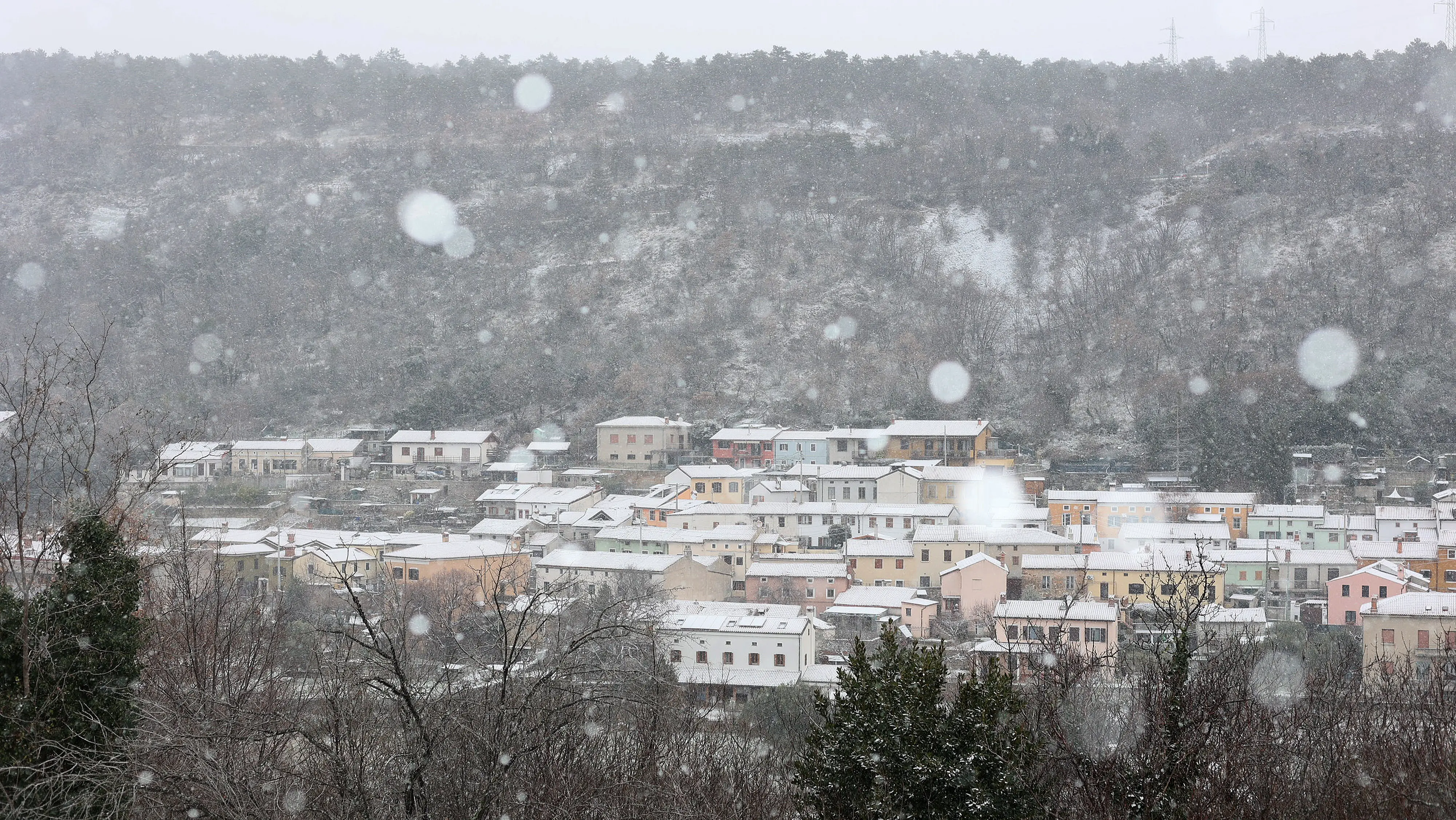 Lunedì i fiocchi bianchi hanno iniziato a volteggiare di buon mattino e hanno scandito l’intera giornata, con intensità ondivaga. A tratti scendevano grossi e turbinosi, a tratti si posavano a terra sottili e sparuti. La linea di accumulo era, grossomodo, quella dei 100 metri di quota. Infatti a Cattinara un velo bianco copriva tetti, parcheggi e le stradine secondarie. L’abitato di Longera, con le sue case pastello ammantate di bianco, assomigliava a un paesino di alta montagna.