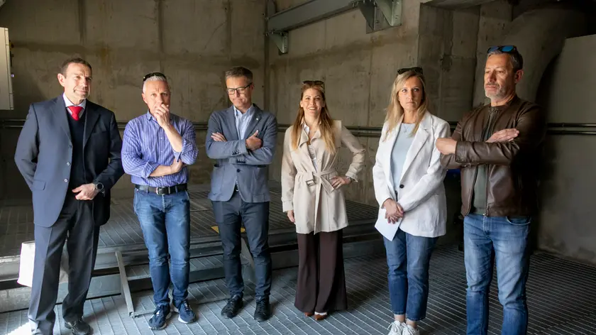 Peretti, Comparin, Corona, Martellos, Maioretto alla presentazione dell’impianto (Bonaventura)
