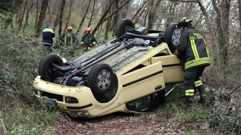 L'auto cappottata nel bosco