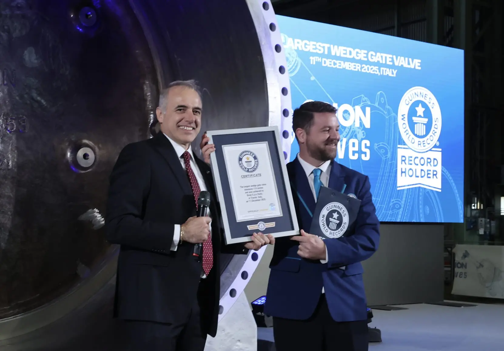 Metro alla mano, il record della valvola più grande del mondo è stato certificato ufficialmente durante la cerimonia celebrata all’Innoway, di fronte a 600 invitati