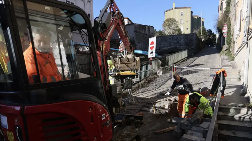 Stanno proseguendo senza sosta i lavori per il ripristino della tubatura d'acqua che si è rotta su Salita delle Mura a Muggia.