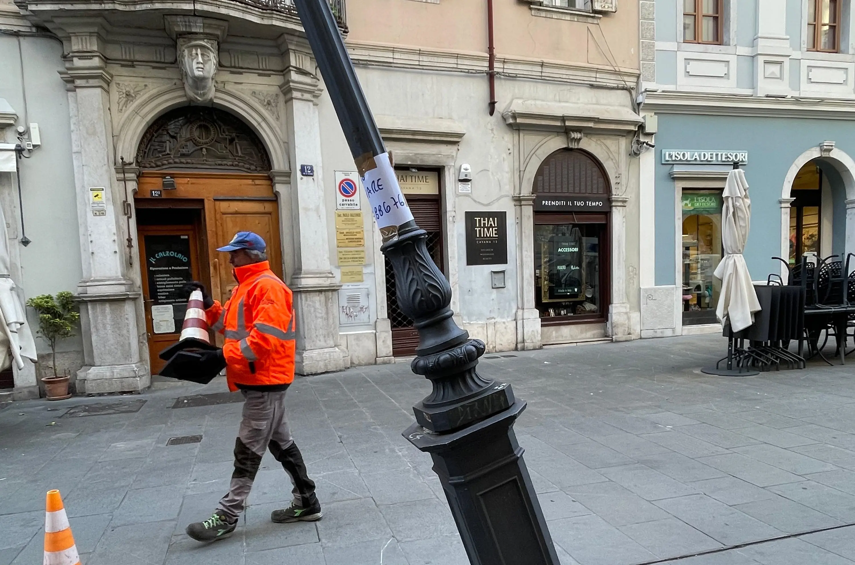 Sul posto la polizia locale per i rilievi. Il palo, seriamente danneggiato, è stato interamente rimosso.