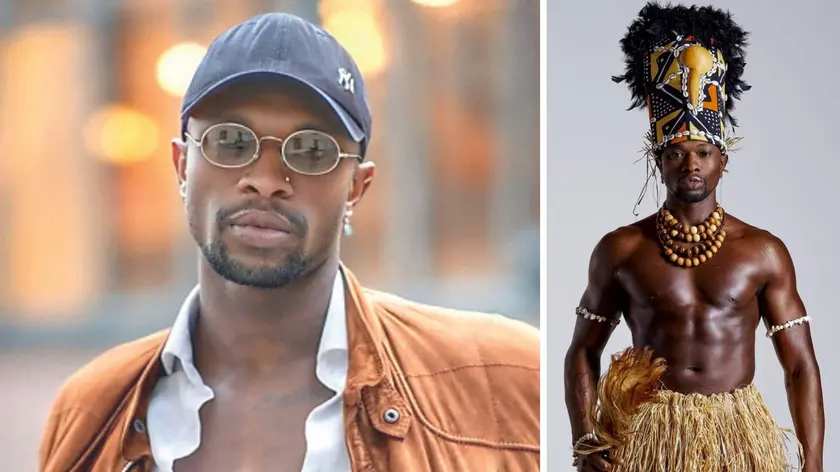 Un primo piano di Junior Traore, a destra con un costume tradizionale ivoriano